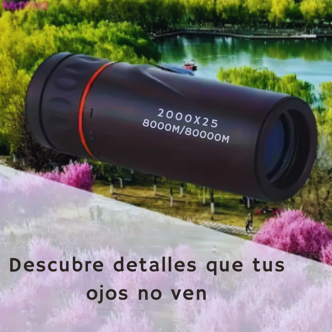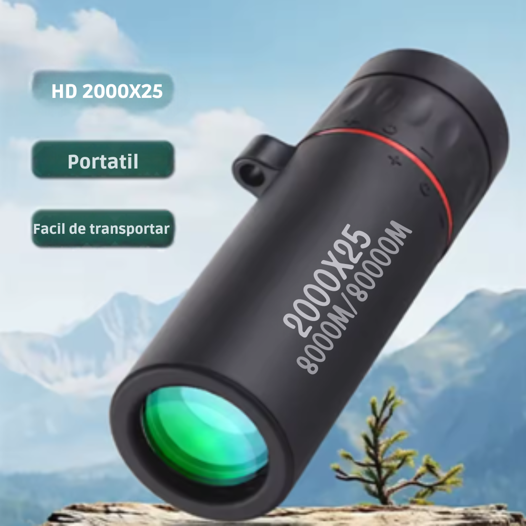 Gracias a su potente capacidad de visión 2000x25, este telescopio monocular te permite observar con gran claridad objetos y paisajes que están a kilómetros de distancia, superando lo que tus ojos o la cámara de tu celular pueden captar